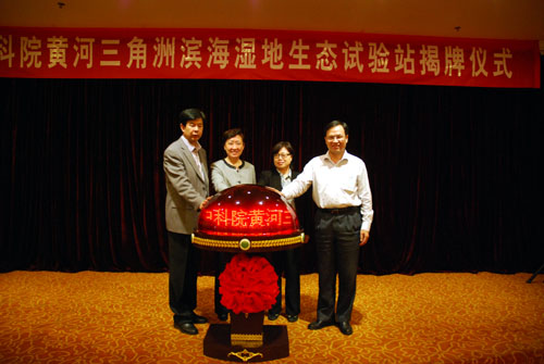 2011年5月22日,中科院黄河三角洲滨海湿地生态试验站揭牌仪式暨建设方案论证会在东营市举行。中科院资环局副局长常旭、山东省科技厅厅长翟鲁宁、东营市委常委、副市长曹连杰、中科院烟台海岸带研究所所长施平共同为试验站揭牌。