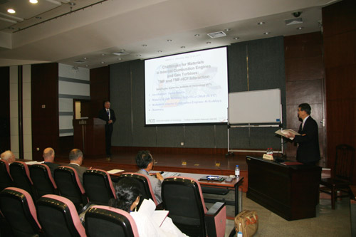 本次论坛由两大部分组成,第一部分是“材料安全与可靠性所面临的挑战”学术研讨会、展板交流和4个工作小组会议,研讨会共邀请了20名世界著名学者作大会邀请报告,报告就高温金属材料、金属生物医用材料、高温陶瓷及金属间化合物、轻金属及复合材料、材料的表面改性与防护、疲劳与断裂、材料计算与模拟等领域开展了广泛深入的交流。同时,来自日本、德国、瑞士、美国、英国、芬兰、俄罗斯、匈牙利、印度、韩国和泰国等国内外30多个世界著名材料研究所、国家实验室和大学的代表参加了研讨会和展板交流活动?;嵋榈牡诙糠治澜绮牧涎芯克じ卟懵厶?,本次所长论坛是世界材料研究所论坛自2005年设立以来第一次举办的专题所长论坛,会议就加强材料研究所之间的合作、共享大型设备、数据库、青年人才培养、建立会员单位之间的跨国教育系统等主题进行了磋商和交流。金属所名誉所长师昌绪院士应邀作了《材料、材料科学与技术在中国》主题报告。本次所长论坛还一致通过德国材料分析与测试研究所副所长T. Boellinghaus博士担任新一届世界材料研究所论坛主席、日本国立材料研究所前任所长T. Kishi 博士担任荣誉主席,会议还接受了来自北京科技大学、上海材料研究所和韩国材料科学研究所成为新会员单位。