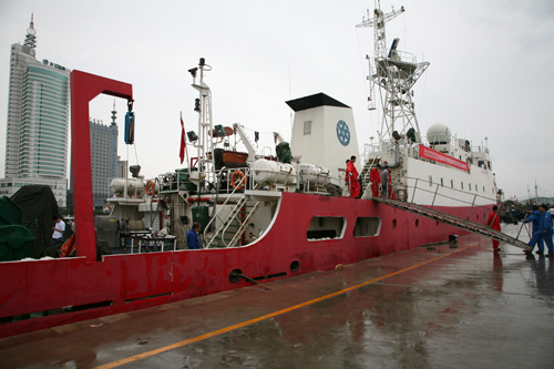 “科学三号”在码头整装待发