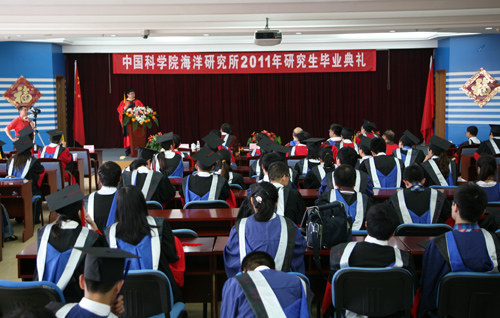 6月28日,中国科学院海洋研究所2011年研究生毕业典礼隆重举行,所长孙松、党委书记王启尧,副所长侯一筠、张国范、李铁刚,以及部分导师代表出席了毕业典礼。王启尧书记主持毕业典礼。