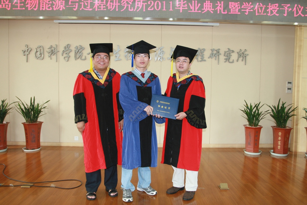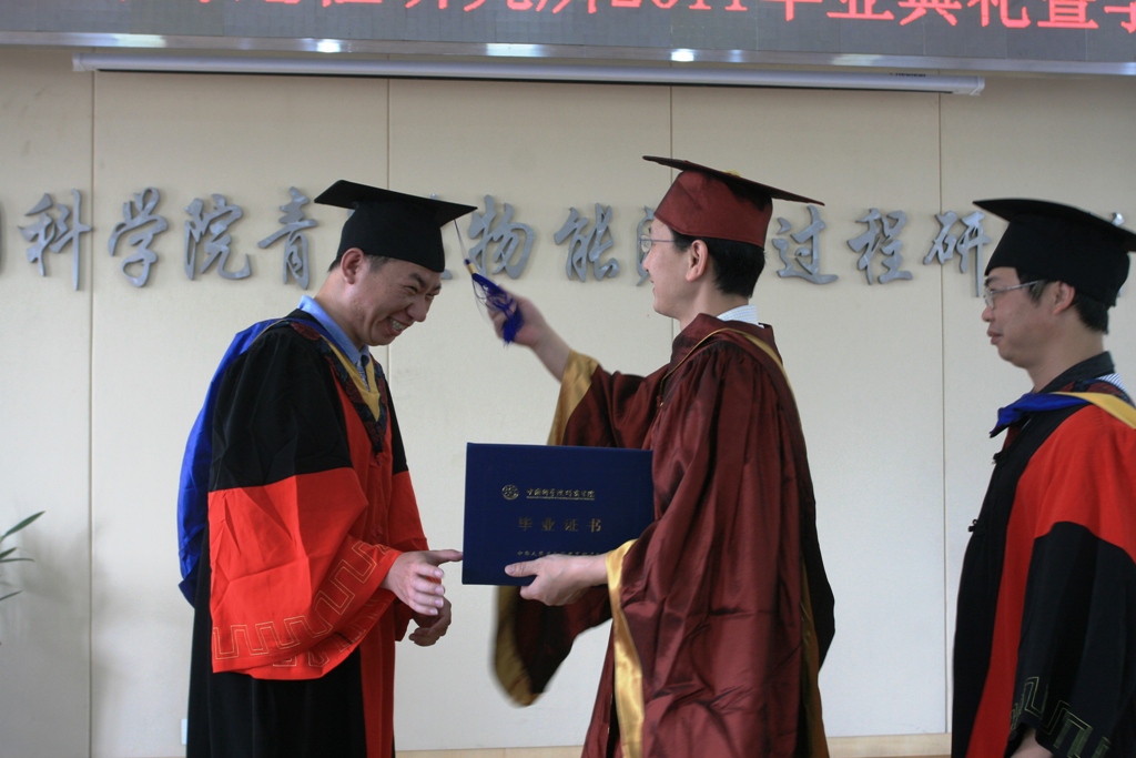 6月30日,中国科学院青岛生物能源与过程所2011年度研究生毕业典礼暨学位授予仪式于在研究所报告厅隆重举行。研究所所长、学位评定委员会主席、博士生导师王利生研究员,副所长、副主席、博士生导师彭辉研究员,导师代表、全体研究生出席了典礼,共同庆祝这一美好时刻。