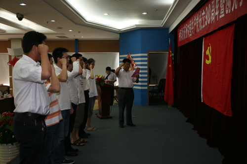 党委委员、所长孙松主持大会。会上,举行了党员入党宣誓仪式,党委委员、副所长李铁刚同志作为领誓人带领新党员宣读誓词。党委书记王启尧同志作了题为《中科院海洋所党建工作历程回顾》的党课辅导报告?;嵋槎?010年以来开展创先争优活动中涌现出来的先进基层党组织和优秀个人进行了表彰,党委委员、副所长张国范同志宣读了《关于表彰创先争优活动暨2010-2011年度评选“两先两优”的决定》,党委委员和纪委委员共同为获奖集体和个人颁发了奖杯和证书。刘长华同志作为获表彰的优秀共产党员代表发言。
