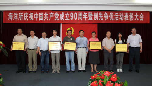 6月30日,中科院海洋所庆祝中国共产党成立90周年暨创先争优活动表彰大会隆重举行。所党政班子成员、院士、党支部委员、全体在职职工、研究生党员和入党积极分子出席了会议,部分老领导,民主党派、无党派人士、党外知识分子联谊会代表应邀出席。