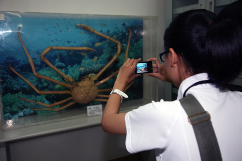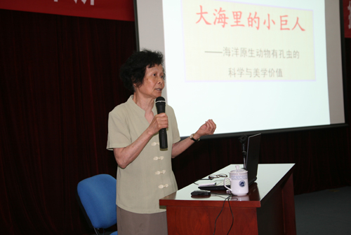 郑守仪院士为小记者们作了题为“大海中的小巨人——有孔虫”科普报告,并现场展示了有孔虫模型,指导小记者们利用显微镜观察有孔虫标本。小记者们还参观了中科院海洋生物标本馆。