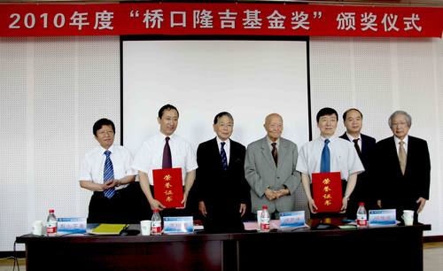 桥口隆吉基金会理事长师昌绪院士和日本日中科技交流协会理事长有山正孝先生出席颁奖仪式,并共同为两位获奖人颁发获奖证书。
