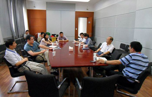 图3 李巨教授、John Hopkins大学马恩教授和西安交通大学单智伟教授等在钛合金研究部进行交流