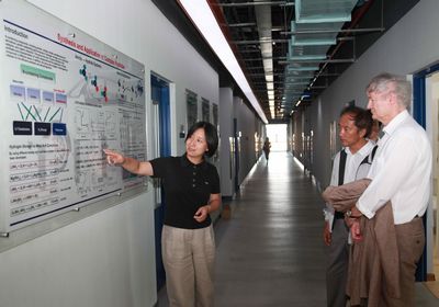 报告结束后,副所长李灿亲切会见了Michael Graetzel教授,并介绍了大连化物所的基本情况及在太阳能科学利用领域方面的科研进展。随后,Michael Graetzel教授参观了洁净能源国家实验室太阳能研究部、燃料电池研究部、氢能及先进材料研究部,并与相关科研人员及研究生进行了深入交流与讨论。