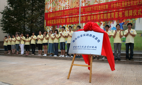9月1日,在青岛嘉峪关小学2011—2012学年度第一学期开学典礼暨升旗仪式上,中科院海洋所——青岛市嘉峪关小学“海洋科普实践教育基地”正式揭牌。