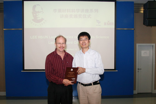 应金属所邀请,2009年度李薰材料科学讲座系列讲座奖获得者、美国德克萨斯大学奥斯汀分校Rod Ruoff教授,于9月13日至9月14日期间,到金属所讲学并进行合作交流。来访期间,金属所常务副所长成会明研究员会见了Rod Ruoff教授,并为Rod Ruoff教授颁发了李薰讲座奖奖牌。Rod Ruoff教授为金属所科研人员和研究生作了题目为“Graphene-based and Graphene-derived Materials”的学术报告。