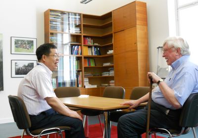 9月15日,李灿院士拜会了2007年诺贝尔化学奖获奖人、催化基础国家重点实验室国际顾问委员Ertl教授。Ertl教授很关心大连化物所的研究工作,并亲切询问了催化基础国家重点实验室的发展情况。