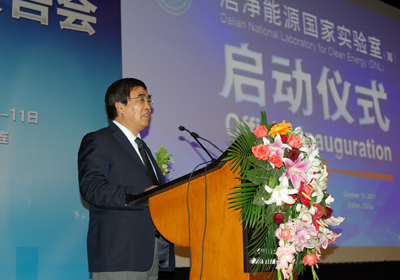 金秋十月,清风送爽。10月10日下午,中科院大连化学物理研究所能源楼会议中心装点一新,一派繁荣景象,洁净能源国家实验室(筹)启动仪式在这里隆重举行。全国政协常委、经济委员会副主任、国家能源委员会专家咨询委员会主任、原国家能源局局长张国宝,全国人大常委会委员、教科文卫委员会副主任委员、科技部原副部长程津培,国家自然科学基金委员会原主任张存浩、中国科学院副院长李静海、中国工程院副院长谢克昌、陕西省副省长吴登昌、大连市副市长朱程清、大连市政协副主席施中岩、大连市科技局局长刘晓英、中科院高技术局副局长刘桂菊、沈阳分院副院长梁波以及国家自然科学基金委的相关领导,新成立的第一届学术委员会委员,兄弟国家实验室的负责人,陕西延长石油集团董事长沈浩、神华集团总经理张玉卓,以及中石油等知名企业的领导出席了启动仪式。大连化物所领导参加了启动仪式。启动仪式由所长张涛主持。