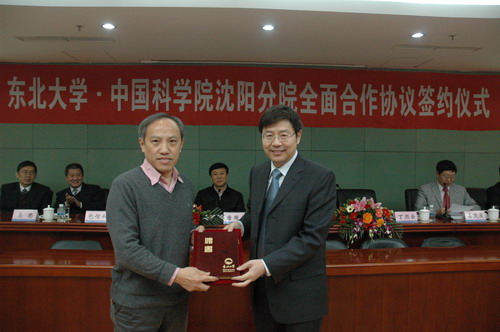 2011年12月20日,在东北大学汉卿会堂中国科学院沈阳分院与东北大学举行了全面合作签字仪式,东北大学与中科院沈阳分院系统金属研究所、沈阳自动化研究所、海洋研究所和沈阳计算技术研究所公司分别签署了人才培养及科学研究合作协议,向首批东北大学聘请的研究所兼职教授(兼职博士生导师)颁发了聘书。沈阳分院院长包信和院士、党组书记马思,东北大学党委书记孙家学、校长丁烈云、副校长姜茂发、左良,沈阳分院系统金属所所长卢柯院士、沈阳自动化所副所长桑子刚、沈阳计算所公司董事长林浒、海洋所等院校领导出席了签字仪式,受辽宁省副省长陈超英委托辽宁省科技厅副厅长唐国华出席签字仪式并讲话,签字仪式由东北大学副校长姜茂发主持。