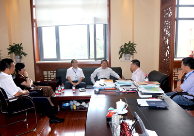 尚勇(中)与李灿院士(右二)交流