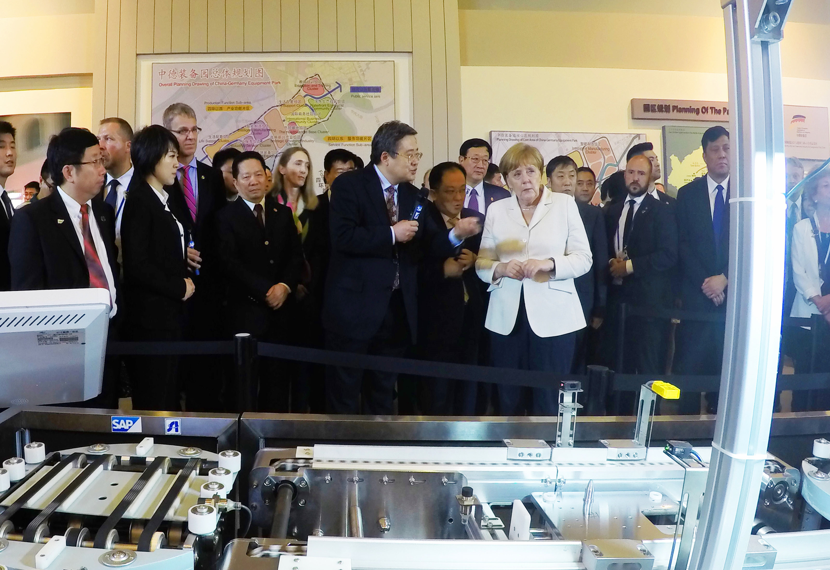 6月14日,德国总理默克尔在沈阳期间实地参观了中国科学院沈阳自动化研究所与德国SAP公司合作研发的工业4.0示范生产线,并对生产线表现出极大的兴趣。沈阳自动化所所长于海斌向默克尔总理详细介绍了这条中国国内首条工业4.0示范线。