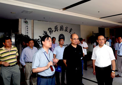 相里斌一行首先参观了化学激光研究室、航天催化与新材料研究室和洁净能源国家实验室,并听取了所内相关重大项目的最新进展汇报。相里斌就感兴趣的问题不时提问,与科研人员展开了深入交流。