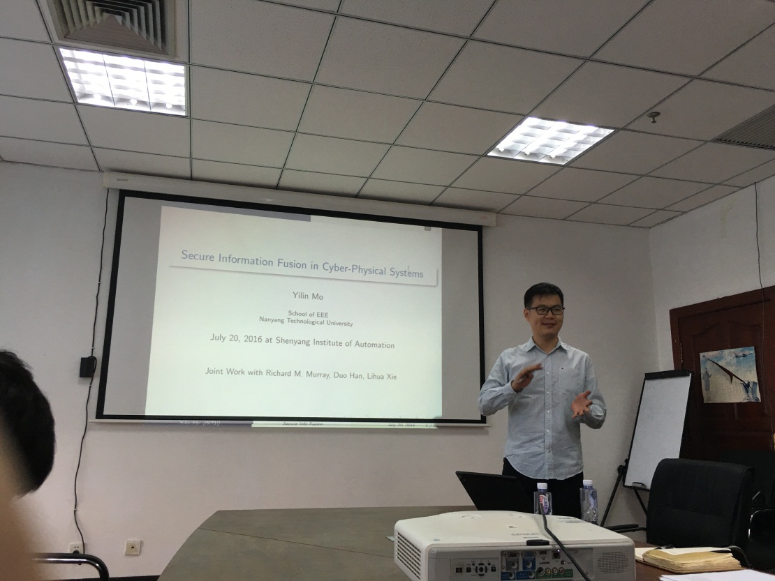 7月20日,应中国科学院沈阳自动化研究所工业控制网络与系统研究室的邀请,新加坡南洋理工大学副教授莫一林访问该所,并作了题为Secure Information Fusion in Cyber-Physical Systems的学术报告。