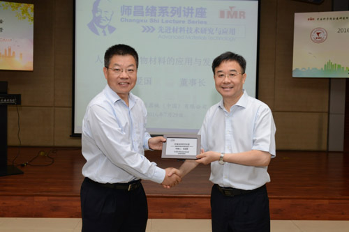 7月29日上午,应金属所杨锐所长邀请,创生医疗器械(中国)有限公司王爱国董事长来所作了题为“骨科生物材料的演进与发展趋势”的师昌绪系列讲座。金属所杨锐所长、张健副所长、相关研究及管理人员参加了此次讲座。讲座由专用材料与器件研究部杨柯主任主持,报告前杨锐所长向王爱国董事长颁发了师昌绪系列讲座纪念牌。