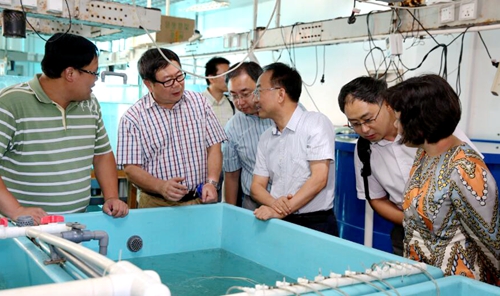 中科院前沿局生命科学处处长沈毅、地球科学处处长段晓男、生命科学处副处长王力为,中科院条财局预算制度处副处长黎红等一同参加了调研。 调研组一行还实地考察了鱼虾参贝藻海水养殖实验室、水母实验室、海洋数据中心和可视化平台、海洋生物标本馆等。