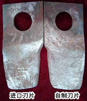 割草刀片在呼垦谢尔塔拉农场考核完后的效果对比
