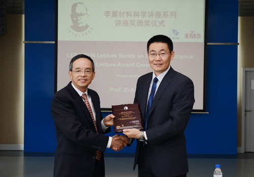 张健副所长为Zi-Kui Liu教授颁发李薰讲座奖奖牌