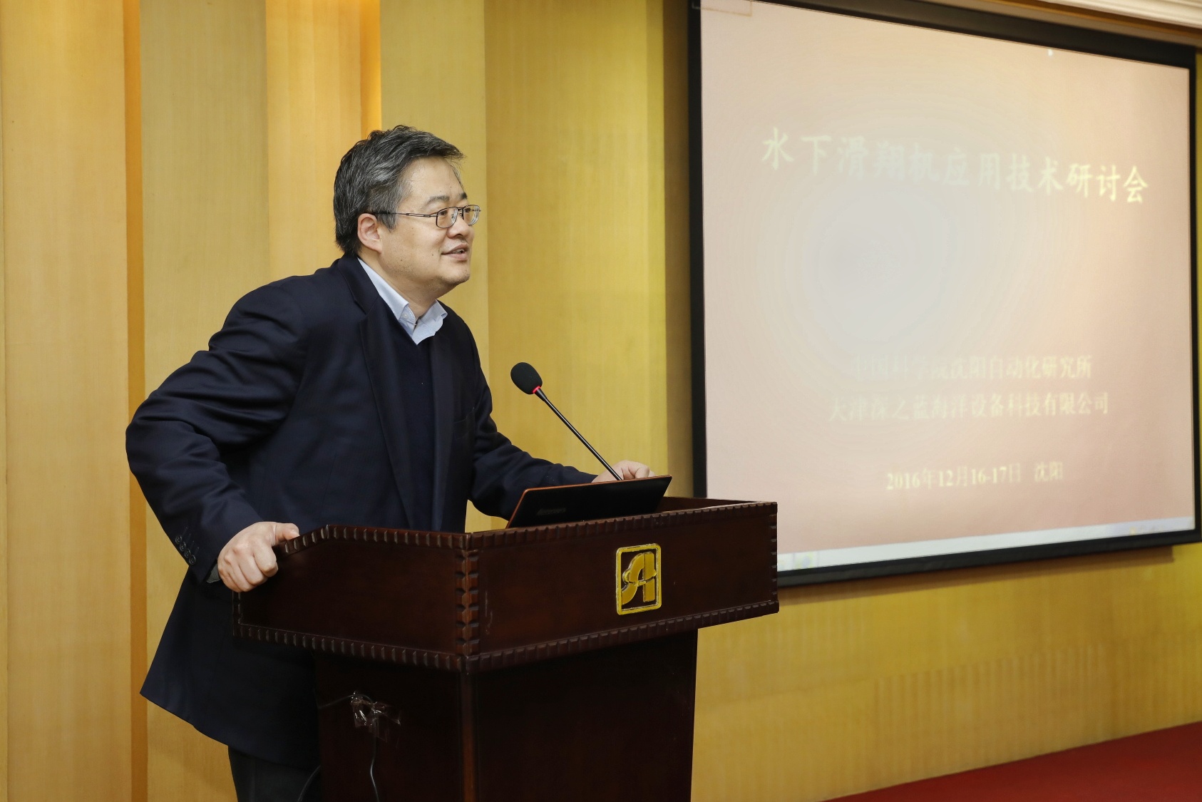 12月17日,由中国科学院沈阳自动化研究所主办,天津深之蓝海洋设备科技有限公司承办的第一届水下滑翔机应用技术研讨会在沈阳举行。来自国家海洋局、中国科学院、国内外科研院校等32家单位百余名专家和学者出席会议,交流水下滑翔机技术与应用。沈阳自动化所所长于海斌、副所长李硕,深之蓝总经理魏建仓等出席会议。
