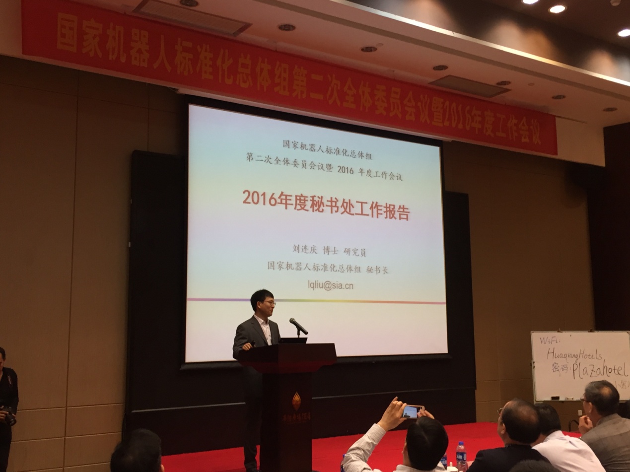 国家机器人标准化总体组秘书长刘连庆作《2016年度秘书处工作报告》