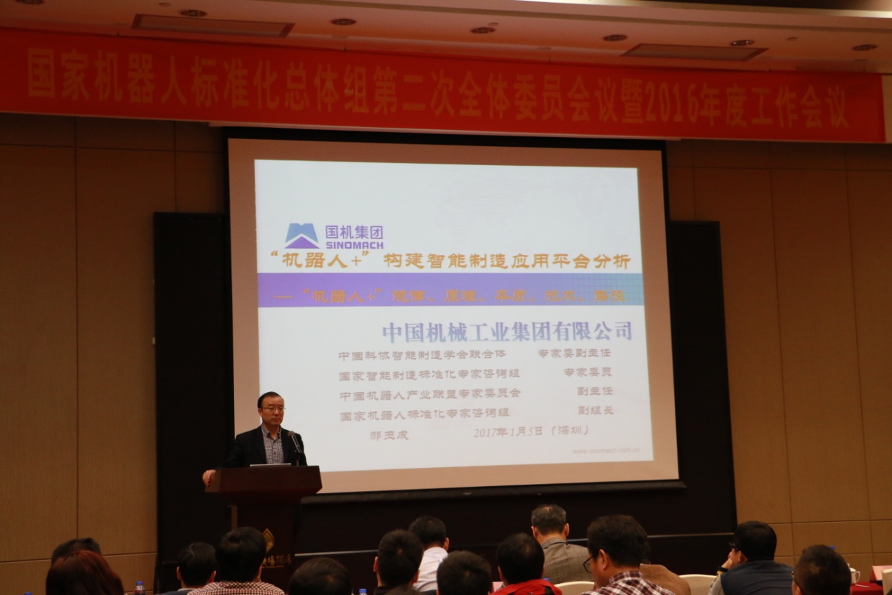 会上,总体组秘书长、中科院沈阳自动化所研究员刘连庆作了《2016年度总体组秘书处工作报告》,汇报了2016年度总体组各项工作的进展?;嵋橄晗附樯芰恕豆一魅吮曜蓟灼な椤泛汀豆一魅吮曜继逑到ㄉ柚改稀返闹贫┕毯湍谌荩芴遄樵?016年标准制修订工作的开展,以及总体组标准立项流程,并介绍了2017年度总体组的工作重点。同时,宣布成立“机器人检测认证标准化工作组”和“公共服务机器人标准化工作组”。