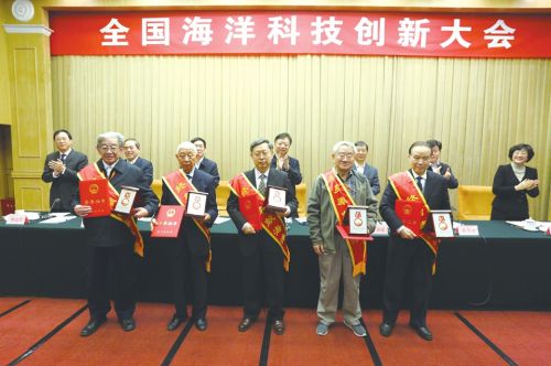 日前,在全国海洋科技创新大会上,国家海洋局向海洋领域29位资深院士颁发“终身奉献海洋”纪念奖章,中科院海洋所胡敦欣院士、郑守仪院士获此殊荣。