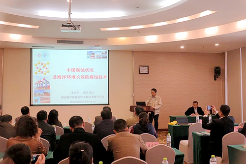 朱庆军高级工程师首先介绍了中国工程院重大咨询项目“我国腐蚀状况及控制战略研究”的项目背景和研究结果,以及国家海洋腐蚀防护工程技术研究中心的新技术,建议将基础设施及重大装备腐蚀防护安全纳入烟台市长远规划,提高防腐蚀意识。王建华助理研究员介绍了烟台市腐蚀调查情况,李言涛研究员介绍了海洋腐蚀评价检测技术,两家院士工作站也分别介绍了合作研发的防腐新材料。
