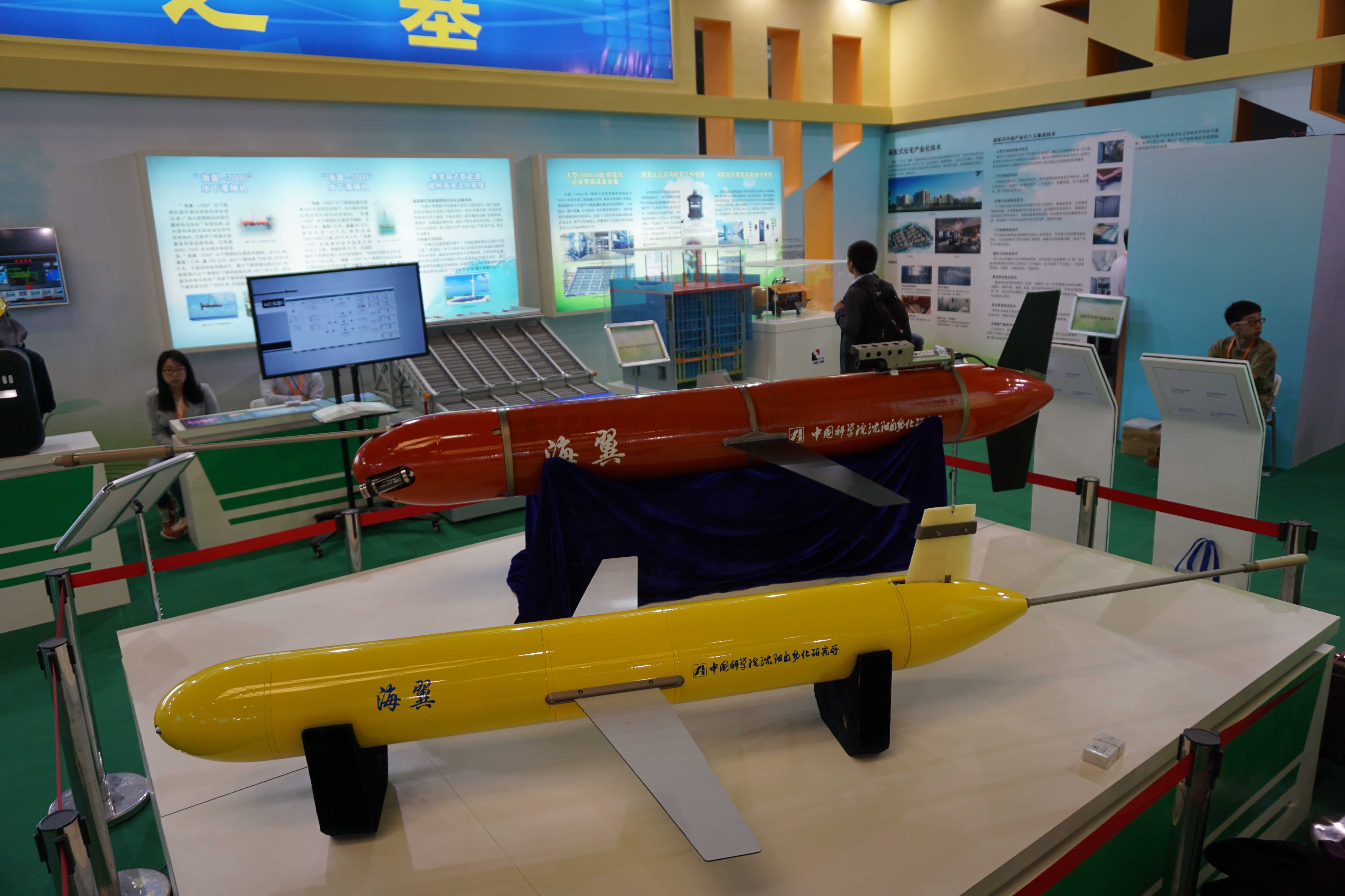 上交会上展出的“海翼”7000米级和1000米级水下滑翔机