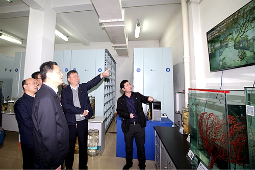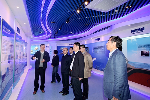座谈结束后,秦杰主任一行参观了海洋所创新成果展厅,实地调研了中科院海洋生物标本馆海洋专项深海样品库以及海洋科学数据可视化系统。