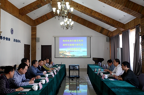 王凡所长对饶瑞中副所长一行来访表示欢迎,并简要介绍了海洋所的基本情况。饶瑞中副所长就安徽光机所的总体状况进行了详细介绍。双方就两所未来可以合作开展的科研工作、成果转化,特别是大气光学、深海探测等方面进行了深入交流。