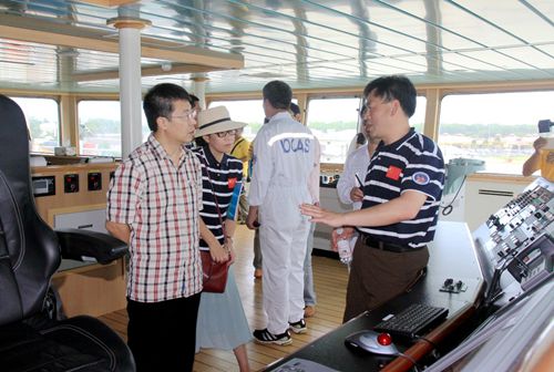 中国驻密克罗尼西亚大使李杰携夫人及大使馆工作人员、援外工作人员代表等到“科学”号进行了参观。中科院海洋所船舶中心主任李雷溪、工程技术部主任刁新源、船长陈修峰及全体船队员接待了李杰大使一行。