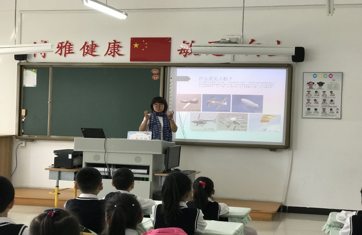 5月14日,中国科学院沈阳自动化研究所自主机器人方向课题组杨丽英、孙晓舒、李思梁、张远航四位科研人员应邀来到沈阳市岐山路第一小学,让科普活动走进了二年级十班的课堂,为同学们带来了一场关于无人机的科普报告。
