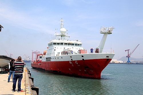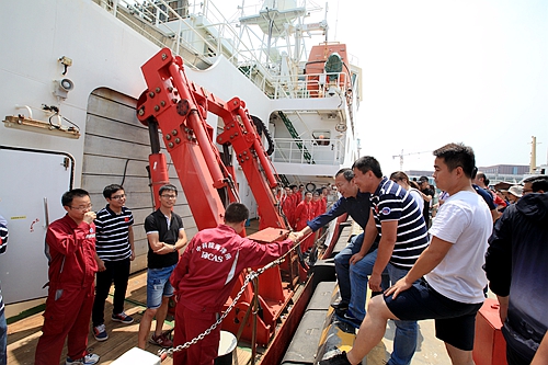 6月9日,“科学”号海洋科学综合考察船完成“西太平洋中南部水体综合调查航次”和“雅浦海山区综合地球物理调查航次”,顺利返回青岛。海洋研究所副所长李超伦及相关部门负责同志到码头迎接。