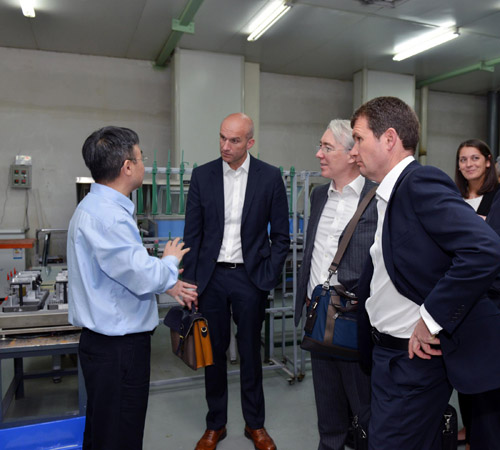 图1 杨锐(左一)向Mike Mosley(左二),Patrick Horgan(左三)和David Ayton(左四)介绍关键工艺