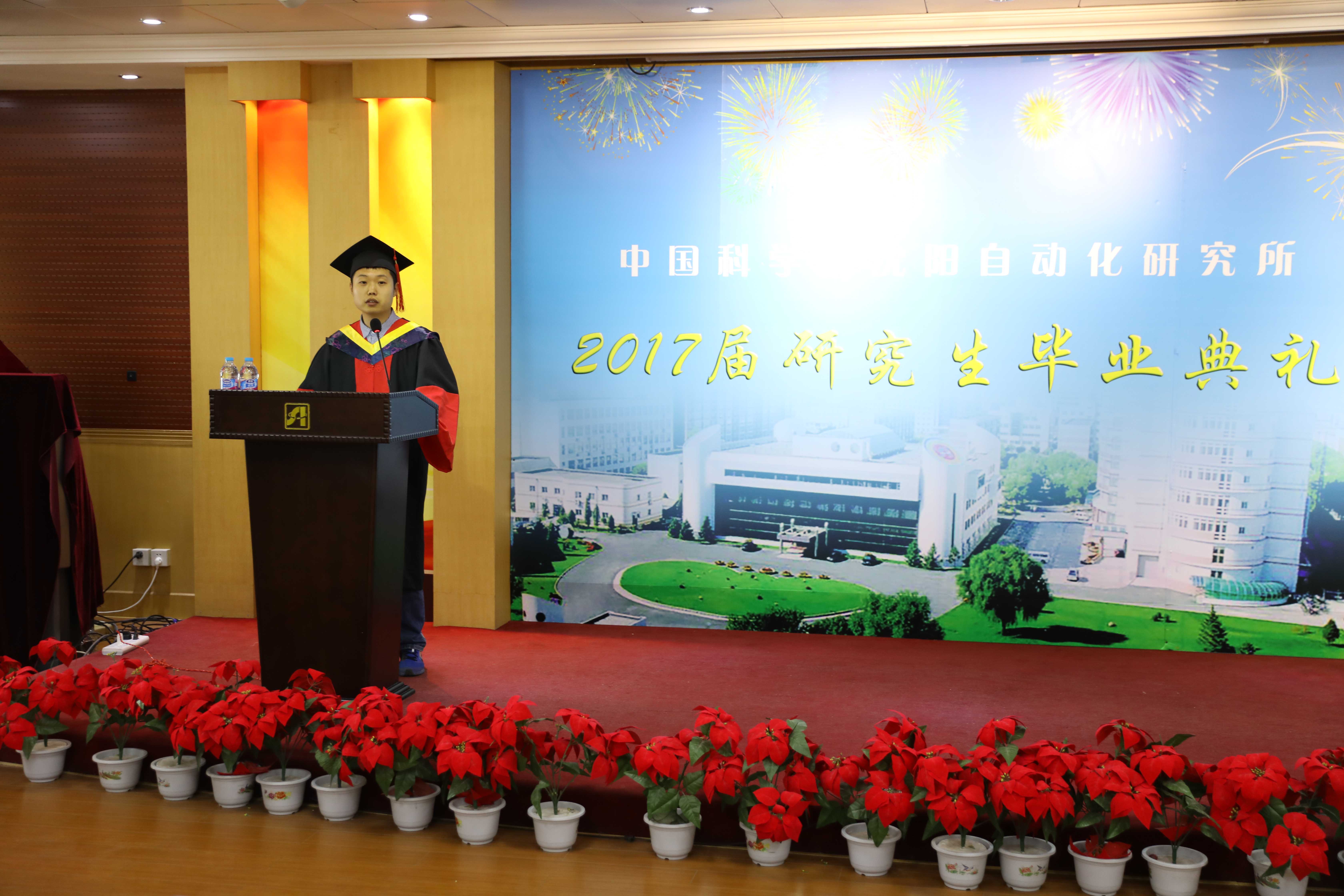 6月16日上午,中国科学院沈阳自动化研究所2017届研究生毕业典礼在学术报告厅隆重举行。沈阳自动化所毕业生和导师、亲朋好友一起参加了这一难忘的人生庆典。沈阳自动化所学位评定委员会副主席、党委书记兼副所长桑子刚及学位评定委员会成员代表出席典礼。典礼由人事教育处处长周船主持。