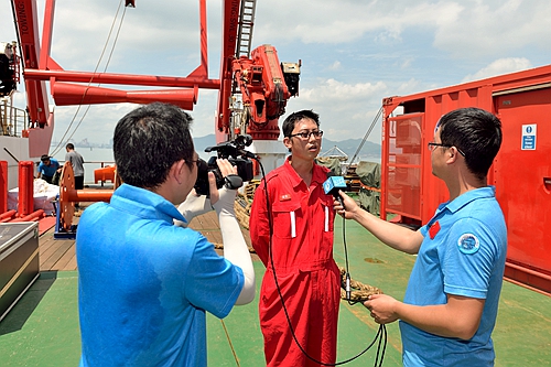 在近10分钟的直播时间里,央视记者向全国观众展示了本次科考任务中的“探索”号AUV,“发现”号ROV、深海生态过程长期定点观测系统(3000米着陆器)、拉曼光谱原位定量探测系统等先进的探测设备,介绍了本次科考任务及亮点,并采访了中科院海洋专项首席科学家、中科院海洋研究所孙松研究员。中央电视台综合频道在随后的新闻节目中也对“科学”号本次任务进行了报道。直播结束后,山东电视台等记者还对“探索”号AUV总体技术负责人、中科院沈阳自动化研究所副研究员赵宏宇,“发现”号ROV负责人、中科院海洋所工程技术部工程师吴岳等人员进行了采访。