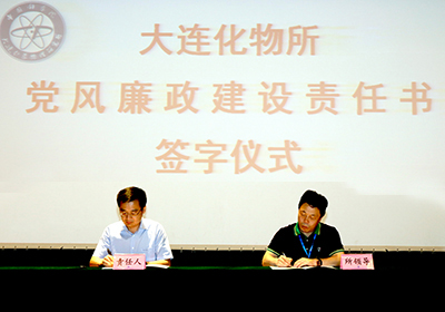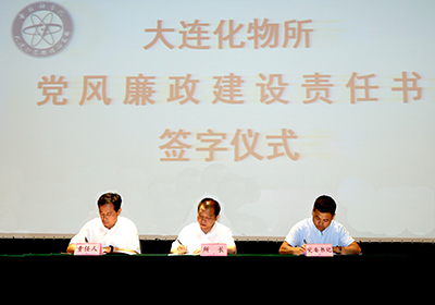 会议举行了责任书签订仪式,纪委书记毛志远介绍了签订责任书的背景、要求和意义。签订责任书是中科院党组从严治党和反腐倡廉工作的要求,也是大连化物所自身发展的内在要求。责任书是开展工作的依据,也是检查考核履职情况的依据。各级责任人要严格按照“一岗双责”要求,认真履行责任书规定的相关责任。随后,所长、党委书记与所领导班子其他成员,所领导班子成员与分管的职能部门负责人、研究室(部)负责人、党的关系在大连化物所的投资企业总经理签订了责任书。