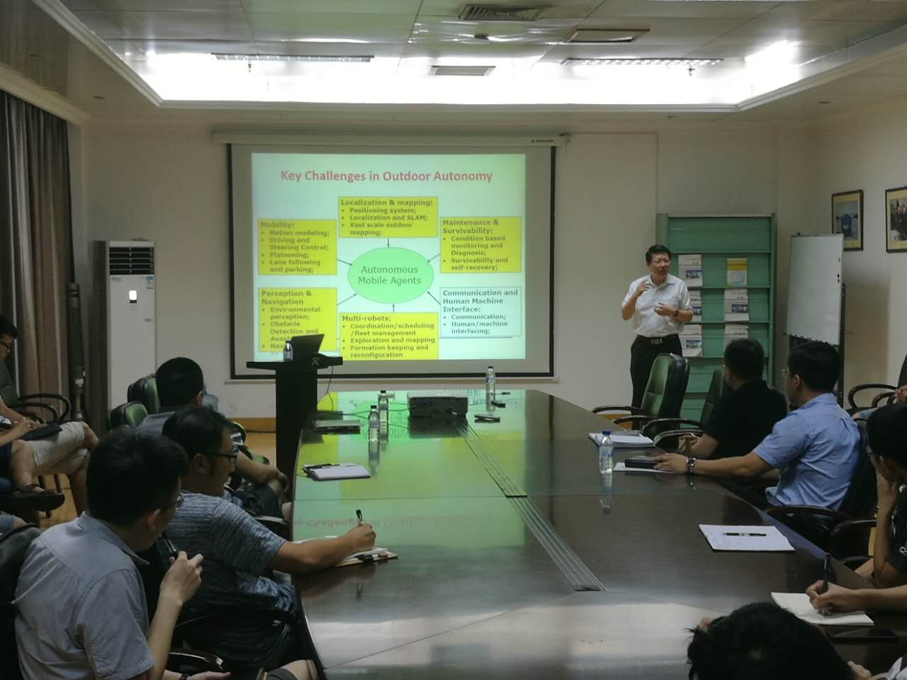7月24日,新加坡南洋理工大学王郸维教授访问中国科学院沈阳自动化研究所,并作了题为Multi-Robots in 3D Unstructured Environments的学术报告。沈阳自动化所党委书记兼副所长桑子刚与王郸维亲切会谈。人事教育处处长周船和相关科研人员、研究生参加了学术报告会。