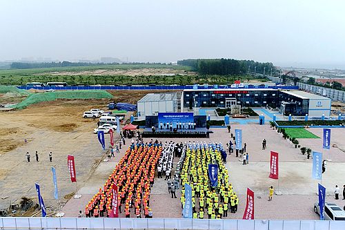 中建八局四公司总经理朱延涛代表施工单位致辞,表示将严把工程质量,加快建设进度,努力建设精品工程。