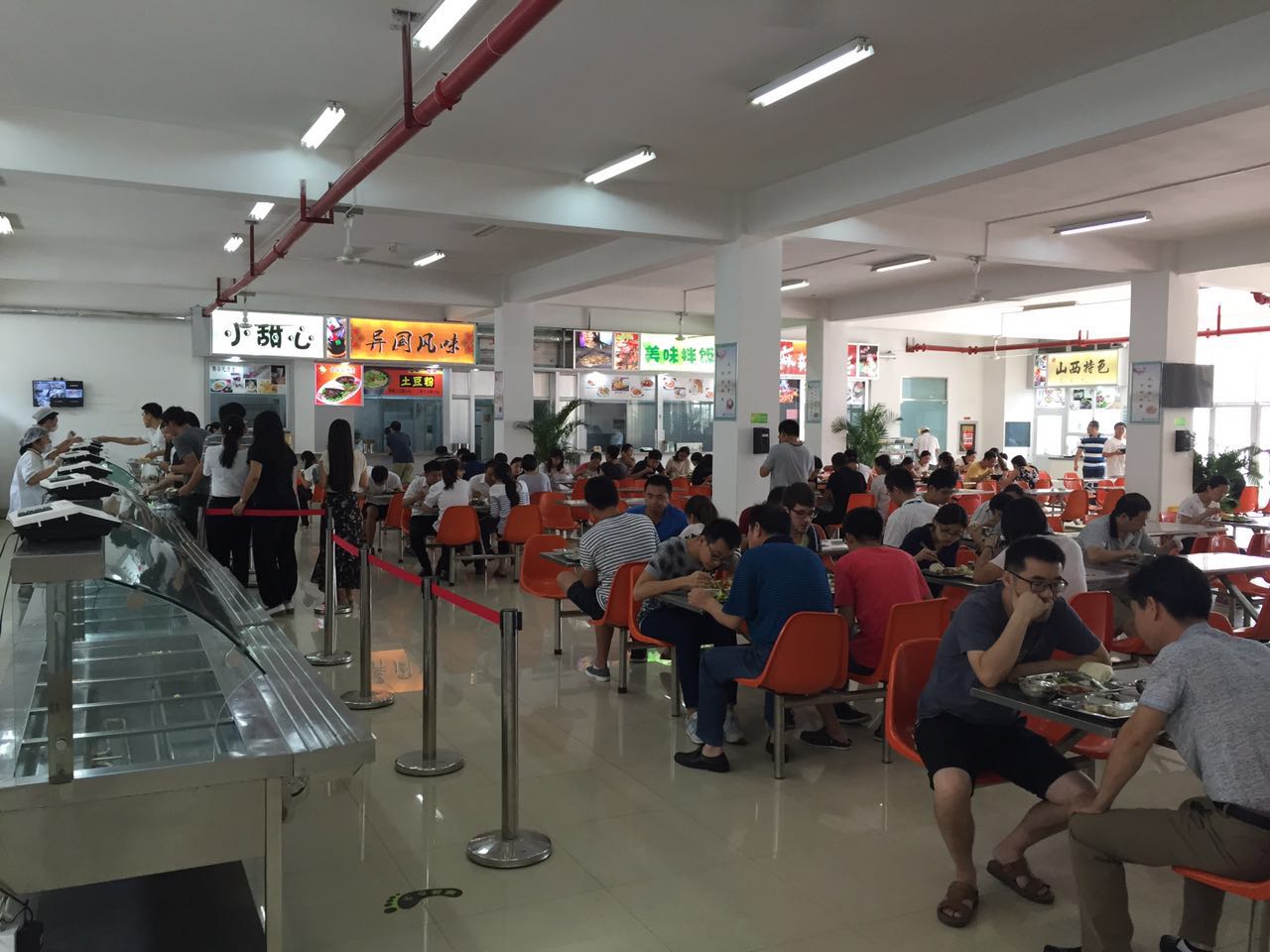 整改后的餐厅内部装饰焕然一新,为就餐者提供整洁、温馨、愉悦的就餐场所。新增特色窗口推出山西面食,有多种口味的刀削面、凉面和炒面;麻辣食族窗口在原有麻辣烫的基础上,新增了麻辣香锅,为爱吃辣的人们多了一份选择;美味拌饭窗口新增了数十种荤素搭配俱全的盖浇饭;还有特色的砂锅米线和土豆粉;“小甜心”西点窗口每天烘培数十种不同口味的面包和点心,每天都有新鲜的蛋挞出炉。餐厅在新菜品推出前举办了菜品试吃会,邀请所内的老师和学生前来品尝,使饭菜口味更加符合职工、学生的需求。