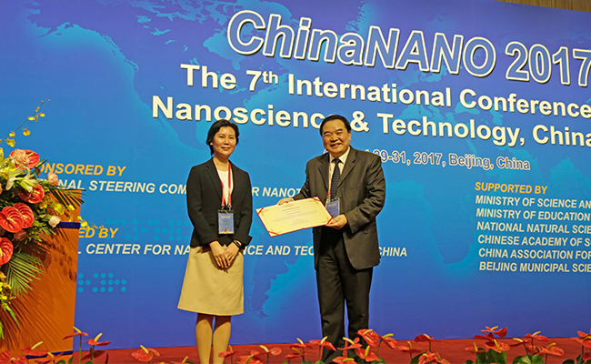 第七届中国国际纳米科学技术大会(ChinaNANO 2017)8月31日在北京落下帷幕,在为期三天的会议中,包括诺贝尔奖获得者、石墨烯的共同发现者康斯坦丁 诺沃舍洛夫教授在内的七位专家被邀请作大会特邀报告,大连化物所包信和院士应邀作题为“Nano Confinement and Catalytic Conversion of Energy Molecules” 的大会特邀报告,并被授予ChinaNANO Award证书。