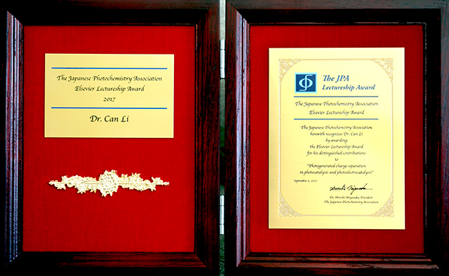 日前在日本仙台举行的日本光化学协会2017年度会议(Annual Meeting on Photochemistry 2017)上,中国科学院大连化学物理研究所院士李灿获得日本光化学奖,以奖励他在太阳能光催化和光电催化研究方面所做出的贡献,并受邀在大会上做了题为“光催化和光电催化的光生电荷分离的研究”的获奖报告。同时获奖的国际科学家还有荷兰阿姆斯特丹大学的A. M. Brouwer教授和印度芭芭原子能研究中心的A. C. Bhasikuttan博士。