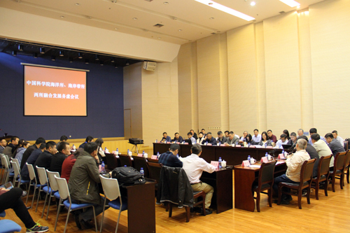 为进一步推进中国科学院海洋研究所、烟台海岸带研究所的融合发展,加强两所的工作交流和制度对接,促进各管理、支撑部门更好地领会院党组的战略部署,围绕科研中心工作,提高管理水平和服务效率,2017年10月17日,在烟台海岸带所召开了两所融合发展工作会议。两所领导班子成员王凡、王辉、高玲瑜、杨红生、王晓斌,以及两所各实验室正副主任、管理和支撑部门负责人共50多人参加了会议。会议分别由烟台海岸带所党委书记高玲瑜、海洋所党委书记王辉主持。