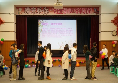 “良辰美景奈何天,赏心乐事谁家院”,又是一年双十一。为了让更多的人尽早“脱光”,找寻到属于自己心仪的另一半,中国科学院大连化学物理研究所在化工楼礼堂举办了“缘来是你”单身派对,活动得到了所内和大连理工大学、东北财经大学、辽宁师范大学等兄弟院校同学的积极参与。