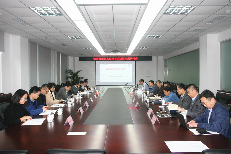吕雪峰副所长对专家的到来表示欢迎,并简要介绍了研究所的情况。崔光磊研究员做了深潜器用固态电池技术进展的汇报,从国内外固态锂电池开发情况,固态锂电池开发技术路线及固态锂电池规?;尚行?,国内外技术路线的分析对比,深潜动力电源存在的问题,应用现状及解决方案等方面介绍了深潜器用固态电池技术的进展。经过多年的努力,崔光磊研究员团队采取代次研发策略,通过“刚柔并济的聚合物电解质技术”“多层复合膜热压技术”“锂金属表面修饰及界面钝化技术”等自主核心技术,攻克“固固界面的离子传导调控”、“固态电解质制备”、“锂金属界面稳定性”、“超薄金属锂片的制备与加工”等安全高能量密度固态锂电池产品产业化的四大关键技术难点,形成了刚柔并济的技术路线,第一代产品已经成功应用于“蛟龙号”着陆器,正在持续开发第二代、第三代产品,并积极推进产业化应用。李俊高级工程师系统介绍了固态锂电池在深潜器上使用的情况,对固态锂电池的使用效果给予了充分的肯定。