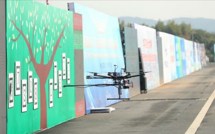 此次比赛主要面向“精准农业”,对虚拟的果树病虫害进行视觉识别与农药喷洒,要求无人机自主起飞并降落,识别显示屏上代表病虫害的数字,并对喷绘区域相应数码框进行精确喷绘,主要考验无人机自主起降、视觉识别、精确定位、补药续喷等能力。本届赛事吸引了来自北京理工大学、南京航空航天大学在内的19支队伍参加。沈阳自动化所“翔鹰”无人机凭借平稳的起降、精准的定位、稳定的飞行、精确的喷绘以第一名的成绩进入决赛,并最终获得该项目冠军。