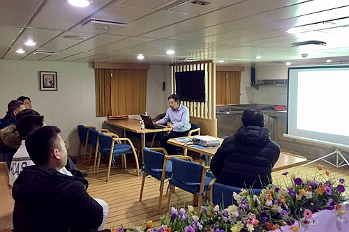 “智者,以别人的惨痛教训警示自己;愚者,用自己的沉痛代价唤醒别人!”培训一开始,船舶中心主任李雷溪就强调要以积极端正的心态面对这次检查和培训,无论执行出??疾烊挝窕故强扛坌菡?,安全永远要摆在第一位。青岛华洋海事公司船长隋延航、于云刚和轮机长张爱福对“科学”号进行了全面安全检查,并就检查中发现的问题进行了详细讲解。检查过程中,船员们也就平时工作中遇到的问题和疑惑与隋船长等进行了细致沟通。检查结束后,隋延航船长为船员们做了公务船船员法规与体系的相关培训。