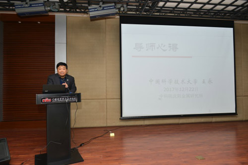杨锐所长首先致辞,他讲到金属所在科学研究、研究生教育上具有优良传统,中科大在人才培养方面也同样具有光荣传统。在科教融合的过程中不能盲目地追求数字、指标,要从实际出发实现融合对接。同时,他希望各位导师要为学生提供良好的成才环境,自身也要时刻保有学习精神,适应形势变化、共同发展。